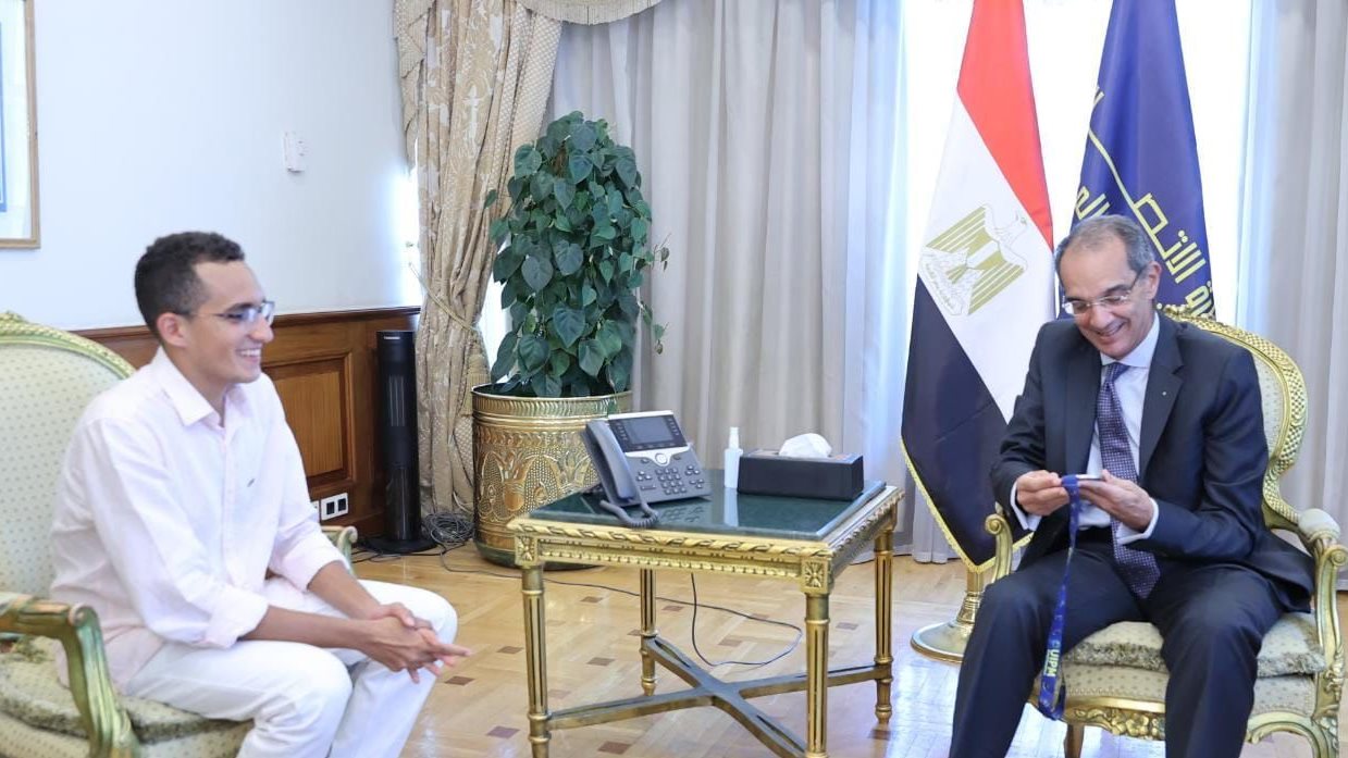 جاء ذلك خلال تكريم الوزير، اليوم الأحد، محمد الجندي الطالب بكلية تكنولوجيا الأعمال في جامعة مصر للمعلوماتية، وعضو فريق المنتخب الوطني للخماسي الحديث للكبار، والذي فاز بالميدالية الفضية في بطولة العالم للخماسي الحديث التي استضافتها مصر مؤخرا.
