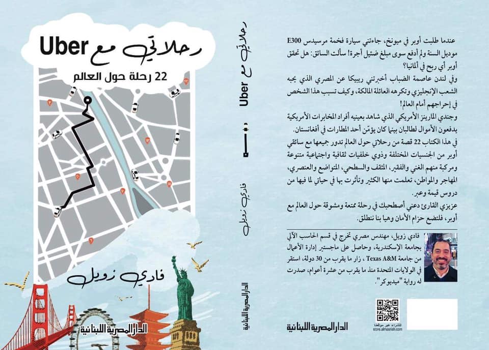 اثنتان وعشرون دولة زارها المهندس والكاتب المصري فادي زويل، بسبب دواعي عمله، انتقل من بلد إلى آخر، تارة يسافر بواسطة الطائرة وأخرى بواسطة قطار أو سيارة، زار العديد من المدن، ورغم التفكير المستمر في العمل إلا أنه أبصر جانبا مميزا في رحلاته وهو أحاديث قائد السيارة المستمرة، والتي دونها وتم نشرها تحت عنوان «رحلاتي مع أوبر» الصادر عن الدار المصرية اللبنانية.