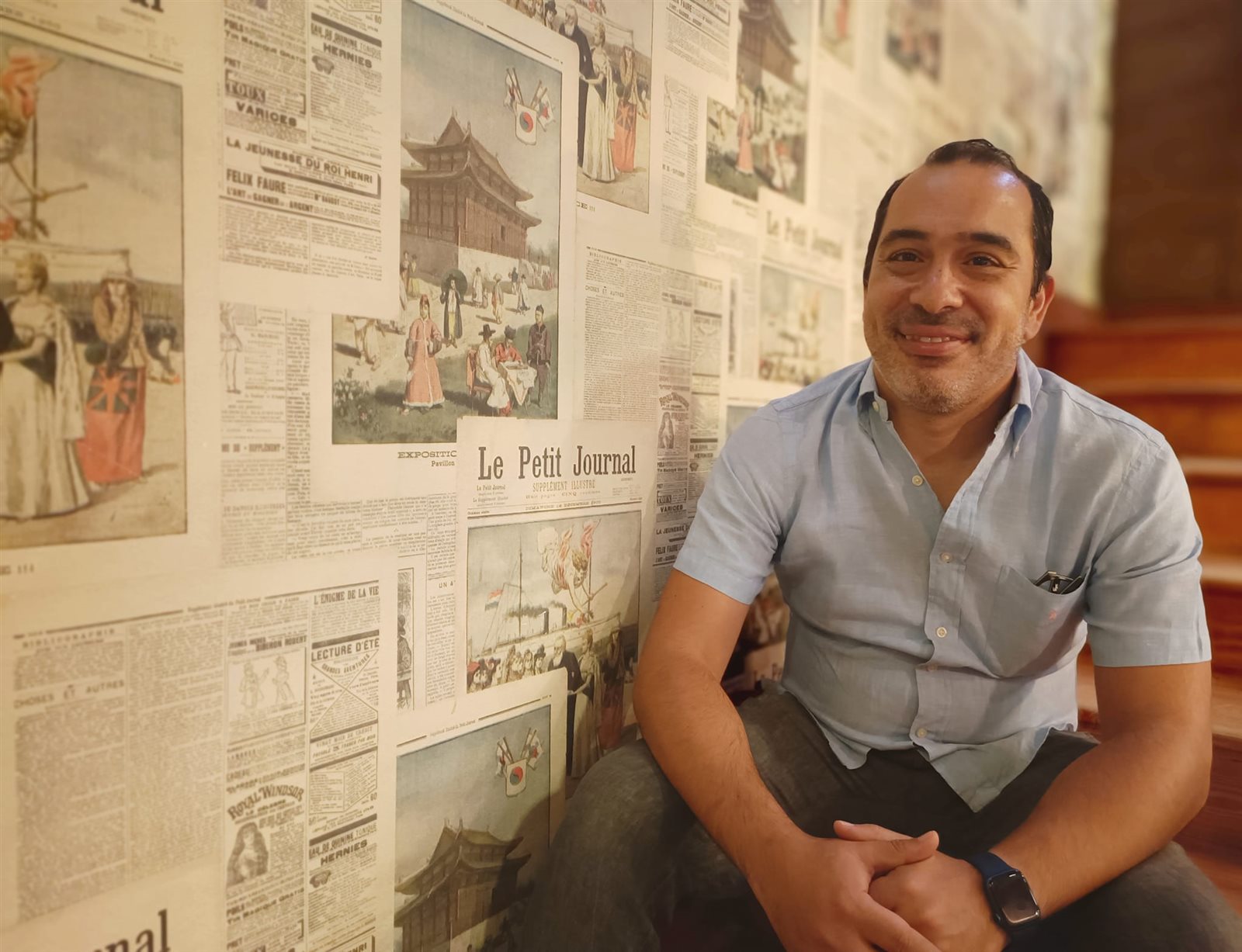 رحلاته حول العالم لما يقرب من 30 دولة، كانت دافعا لإطلاعه على كل الثقافات معرفا نفسه بأنه مصري ويستكمل الحديث، ومن هنا يلاحظ ردود الأفعال.