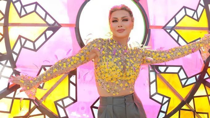 وظهرت نوال الزغبى وهي تستعرض إنوثتها ، و علقت قائلة: “ليكي شخصيتِك وكيانكِك بالِك لازم يرتاح عيشي من دلوقتي عشانِك ده أخَد الشرّ وراح” .