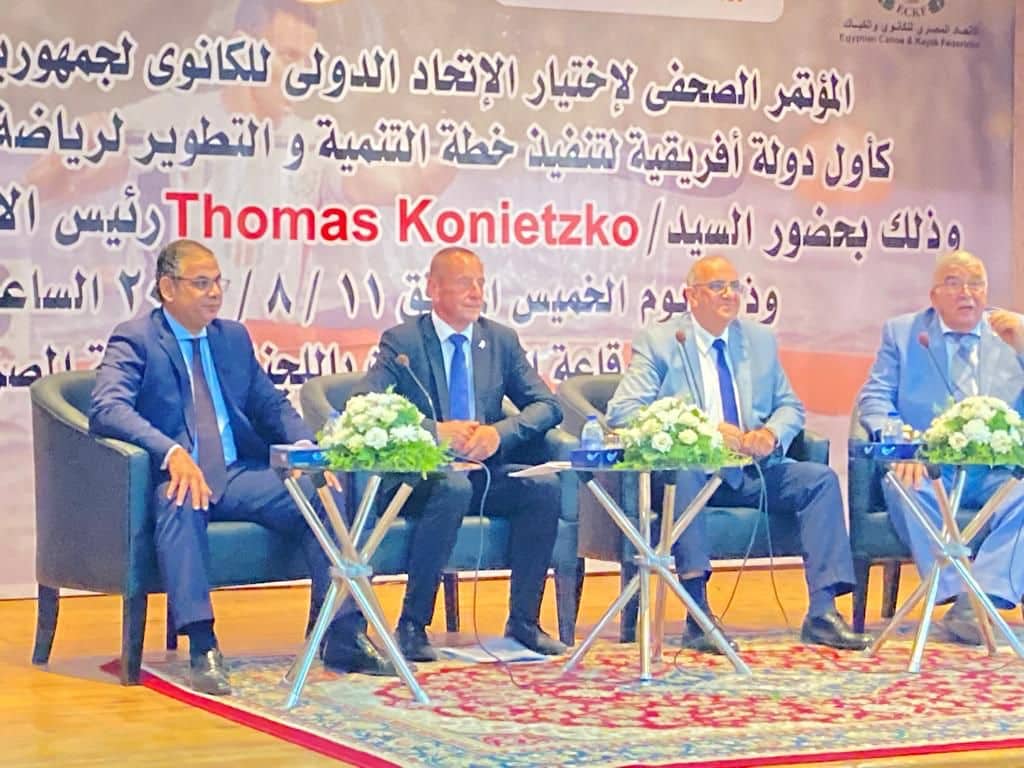 عقد اليوم بمقر اللجنة الأولمبية المصرية مؤتمر رئيس الاتحاد الدولي للكانوي لاختيار مصر كأول دولة افريقية لتنفيذ خطة التنمية والتطوير لرياضة الكانوي بقارة افريقيا .