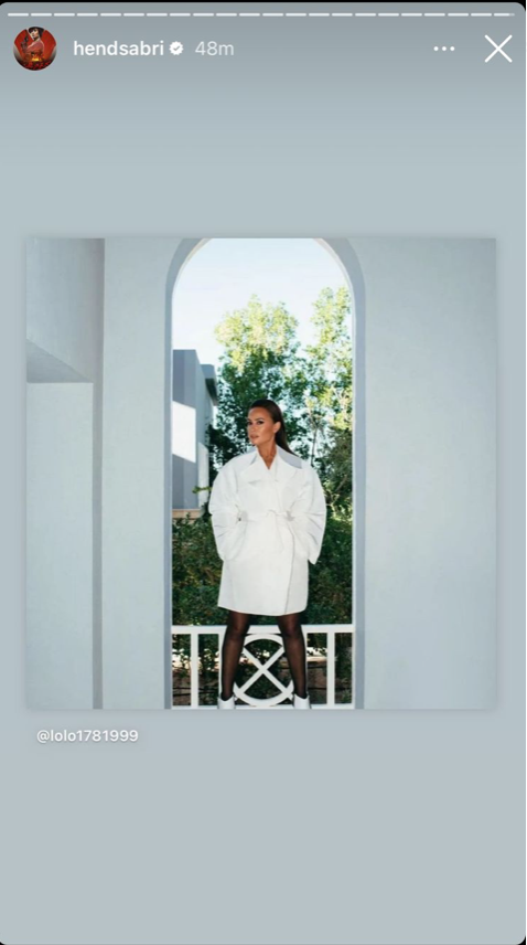 و ظهرت هند صبري بإطلالة ناعمة بجاكيت طويل باللون الأبيض وتفاعل معها عدد كبير من متابعيها ونالت الصورة على إعجابهم.