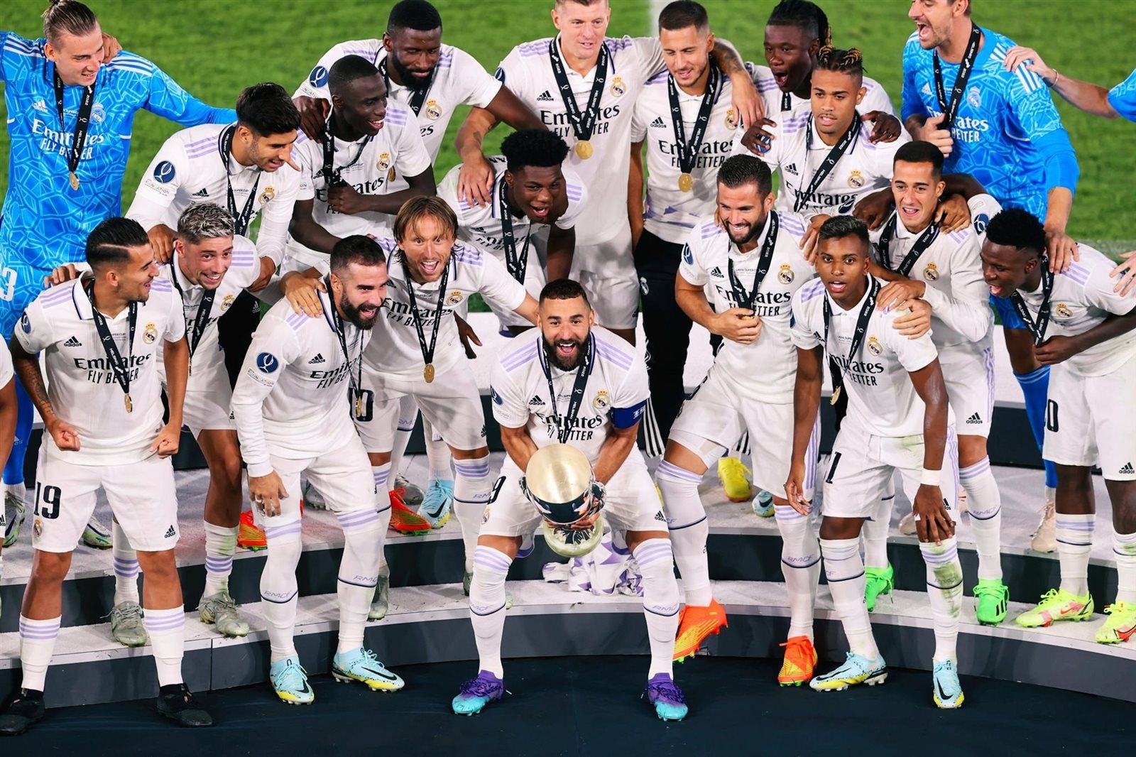 وحقق ريال مدريد كأس السوبر الأوروبي قبل أيام قليلة بفوزه على اينتراخت فرانكفورت الألماني بنتيجة بهدفين دون رد .
