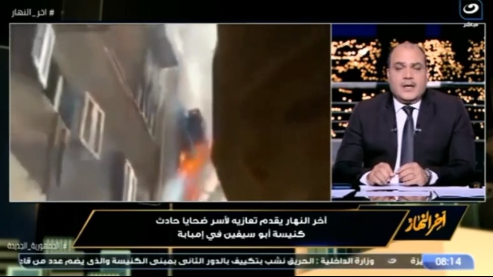 وقد سيطرت قوات الحماية المدنية بالجيزة على حريق كنيسة الشهيد أبي سيفين بأرض المطار في إمبابة بعد ساعات من محاصرة النيران وألسنة اللهب المتصاعد من المبنى الخدمى للكنيسة.