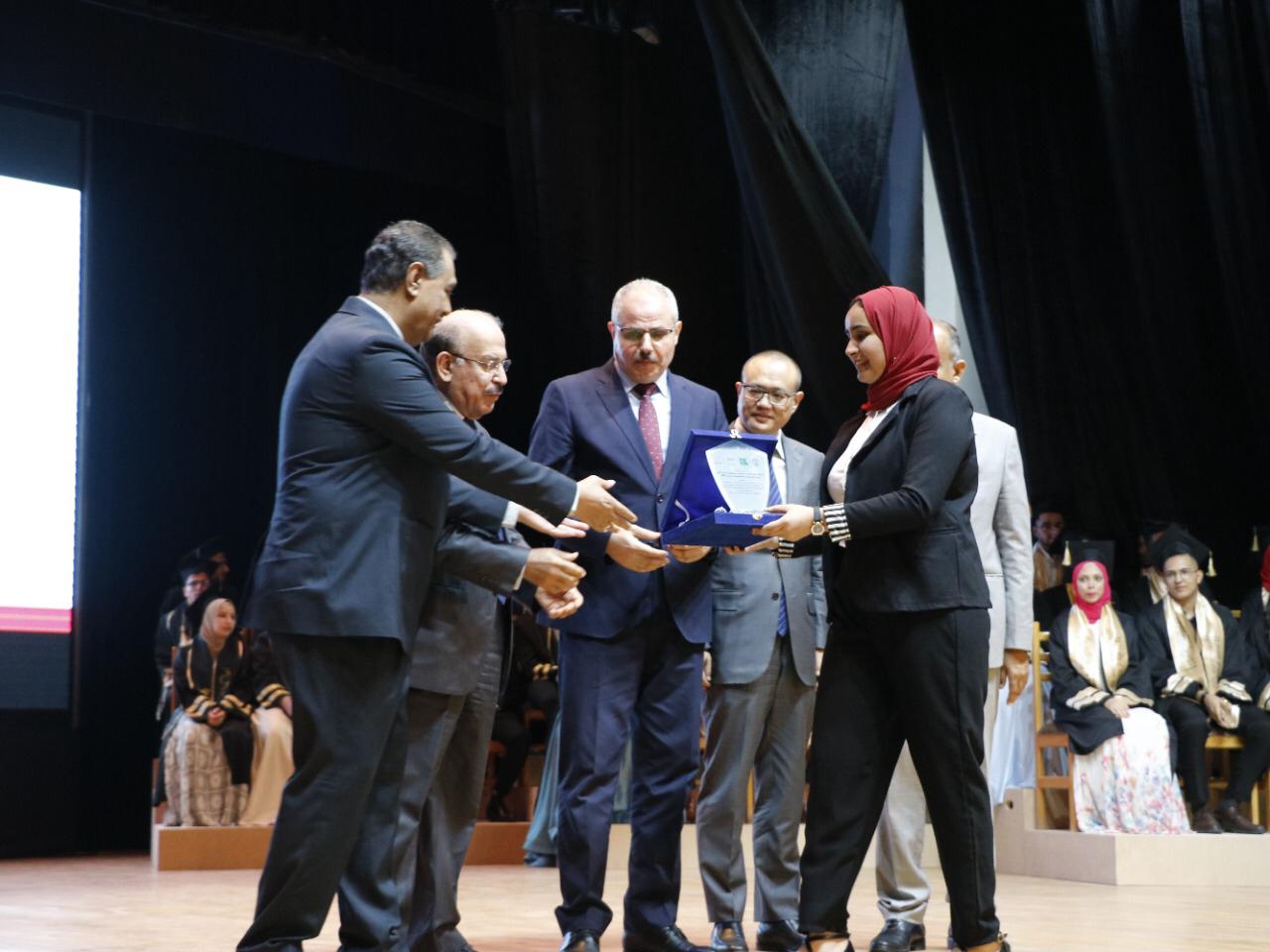 وثم بدأت مراسم تسليم الدروع على شركاء النجاح بالكلية المصرية الصينية من الجانب الصينى وممثلى مؤسسة مصر الخير و دولة الكويت الشقيقة و جمعية عبد الله النورى الخيرية و قيادات جامعة قناة السويس.