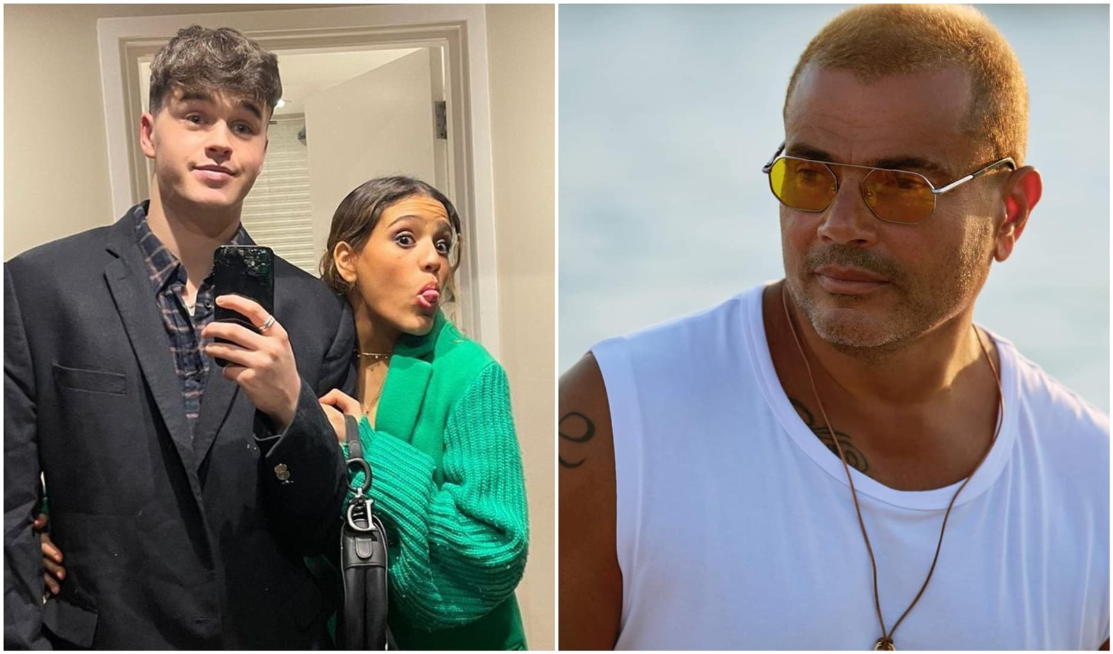 حيث ظهرت ياسمين الخطيب بإطلالة مثيرة باللون البيبي بلو بجيبة قصيرة وتوب من نفس اللون مكشوف من الصدر والخصر.