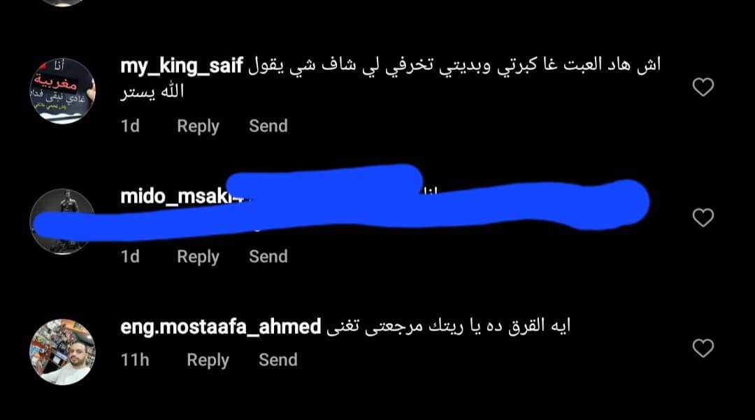“ايه الكلمات الهايفة دي” مجرد تعليق واحد ضمن كثير من التعليقات السلبية التى جاءت لدوللى شاهين على صفحتها فور طرحها أغنيتها الجديد، كان أبرزها تعليق أحمد الشيخ والذى كتب أنا سمعت الأغنية وحزنت لحالك واللى وصلتيله للأسف، فيما علق آخر على الأغنية قائلا: ايه القرف ده ياريتك مارجعتى تغني.
