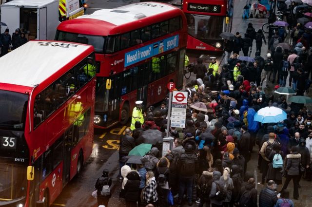 دخل العاملون بمترو الأنفاق وسائقي الحافلات في العاصمة البريطانية لندن في إضراب عن العمل لمدة 24 ساعة، احتجاجًا على ضآلة الأجور التي يتقاضونها والمعاشات التقاعدية المخصصة لهم.