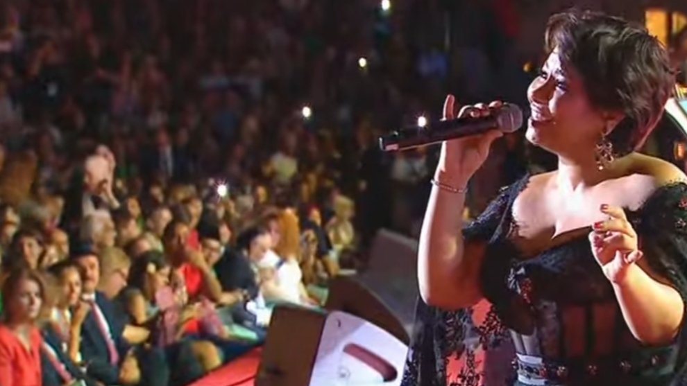 وحرصت شيرين على تقبيل يد طبيبها الخاص خلال إلقاء كلمتها في مهرجان قرطاج.