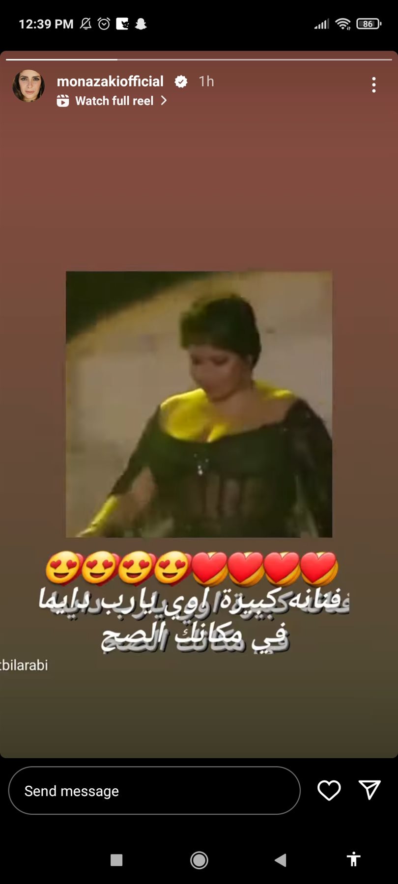 وجهت الفنانة منى زكى، رسالة إلى الفنانة شيرين عبدالوهاب عبر خاصية الاستوري علي صفحتها الرسمية على موقع التواصل الاجتماعي للصور والفيديوهات انستجرام.