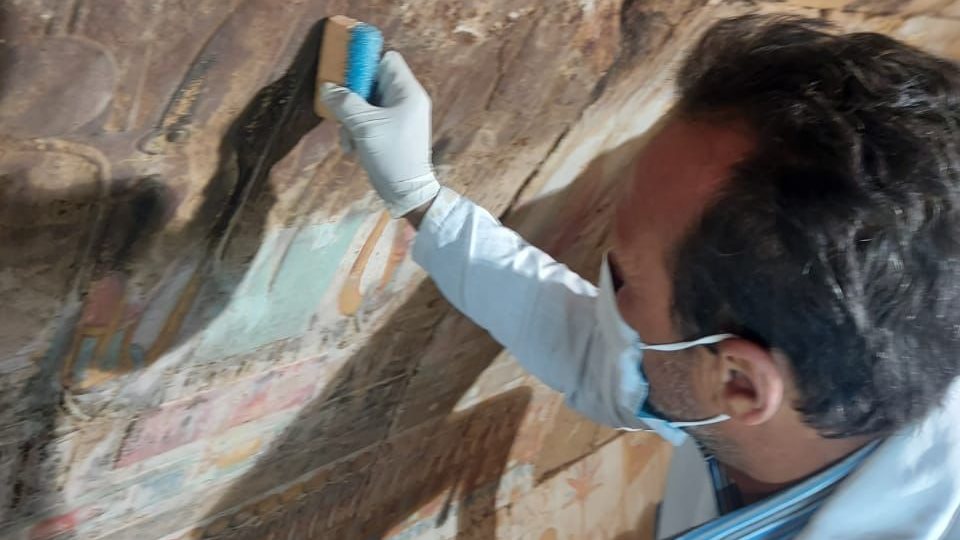 وأنهي فريق العمل من مرممي وأثري المجلس الأعلى للآثار أعمال ترميم مقصورة الإله آمون رع إحدى المقاصير السبعة الموجودة بمعبد ستي الأول بأبيدوس بمحافظة سوهاج.