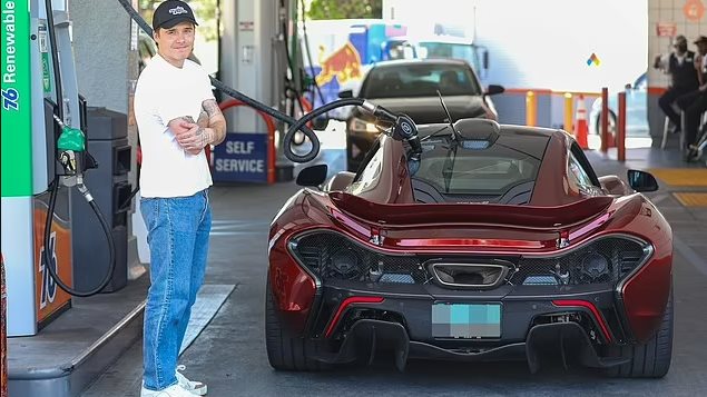 شوهد بروكلين ، ابن ديفيد بيكهام وزوجته فيكتوريا بيكهام، عدة مرات وهو يتجول في شوارع هوليوود بسيارته الخارقة ماكلارين P1 ذات اللون الأحمر العنابي.
