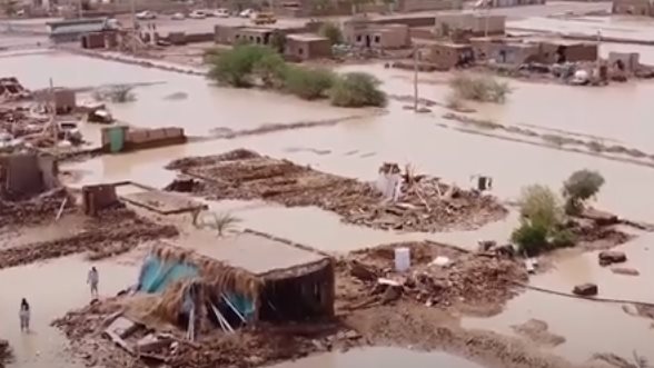 وأظهرت مقاطع صوّرتها طائرات بدون طيار مناطق شاسعة في ولاية الجزيرة ، قد غمرتها مياه الفيضانات التي أدت إلى مقتل العشرات وتدمير آلاف المنازل السكنية في مناطق متفرقة من البلاد.