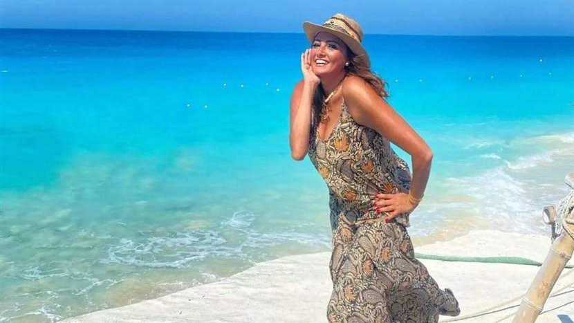 وظهرت بشري علي شاطئ البحر، مرتدية فستان أنيق مكشوف البطن، تاركة خصلات شعرها منسدلة علي أكتافها، مع بعض الاكسسوارات ذهبية اللون.
