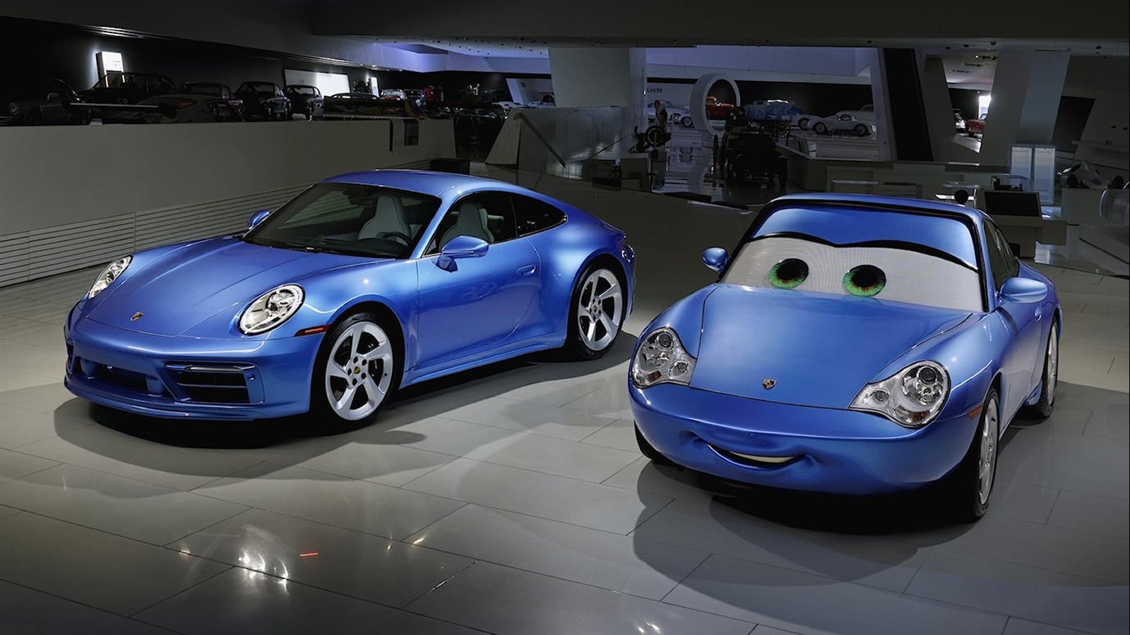 تعاونت شركة بورشه مع استوديوهات بيكسار للرسوم المتحركة لتصنيع سيارة سالي كاريرا ، التي ظهرت في فيلم "سيارات" cars وهي سيارة بورشه 911 كاريرا موديل 2002، وتم بيعها بالمزاد العلني للأعمال الخيرية بقيمة 3.6 مليون دولار أمريكي.