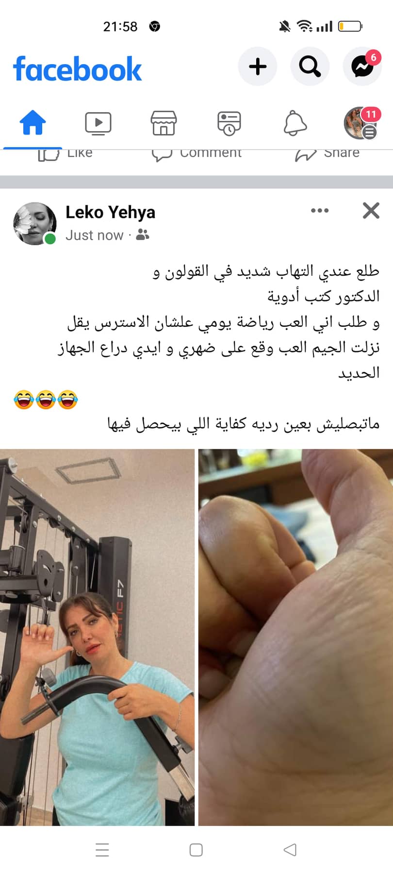 وأضافت ـأن طبيبها الخاص نصها بالذهاب إلى الجيم لتقليل التوتر وتحسين صحة القولون إلا أنها أصيبت نتيجة إنزلاقها على الظهر بوعكة صحية آخرى .