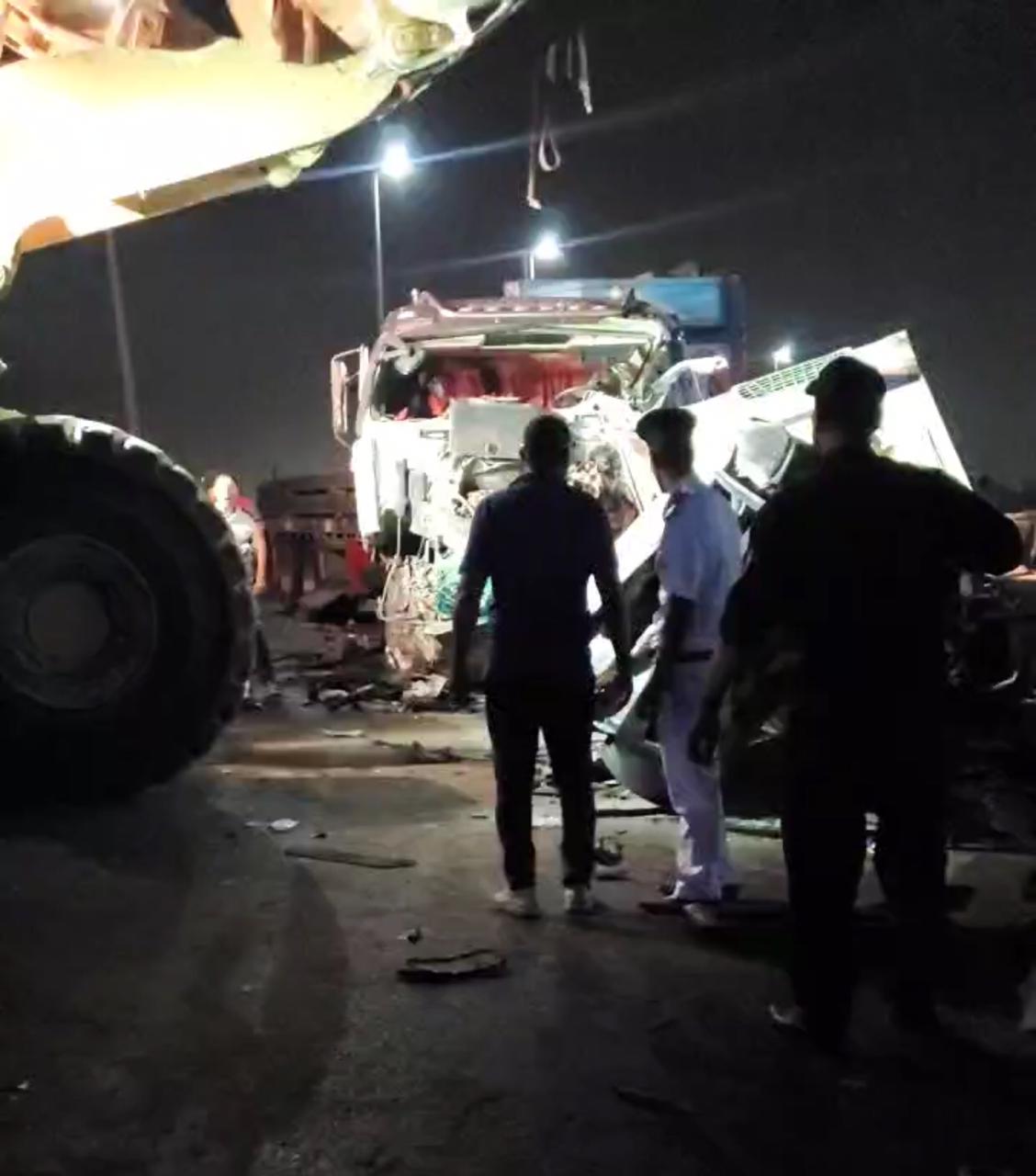 حادث مميت وبشع على الطريق الدائري في الجيزة، حيث أصطدمت سيارة نقل تريلا مع 7 سيارات بينهم سيارة ربع نقل بنطاق مناطق المتحف المصري الكبير.
