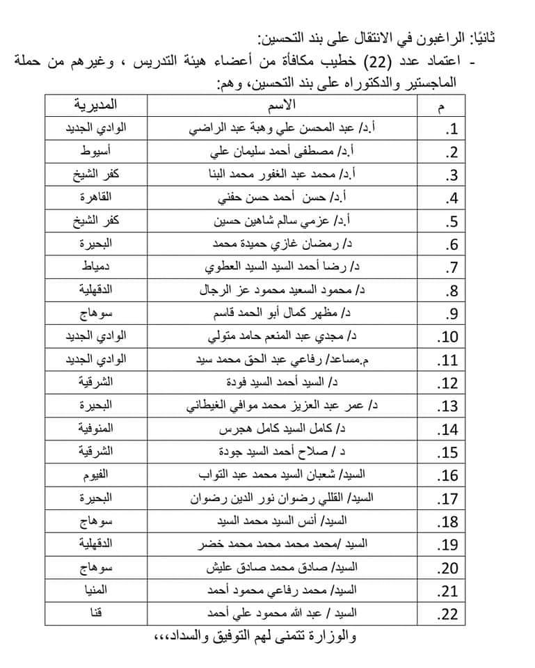 اعتماد عدد (29) خطيبًا جديدًا من أعضاء هيئة التدريس، وغيرهم من حملة الماجستير والدكتوراه على بند التحسين، وهم: