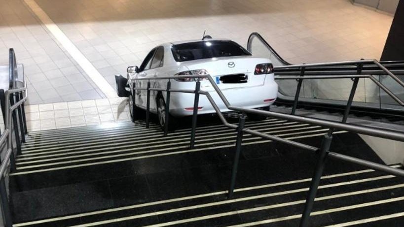 انتهى الأمر بالسيارة المسروقة على سلالم إحدى أكثر محطات المترو ازدحامًا في مدريد، وبحسب ما ورد كانت السيارة في ممر للحافلات قبل أن تصطدم بأبواب مركز التسوق Plaza Eliptica، وقد حاول رجال الطوارئ سحبها بواسطة رافعة.
