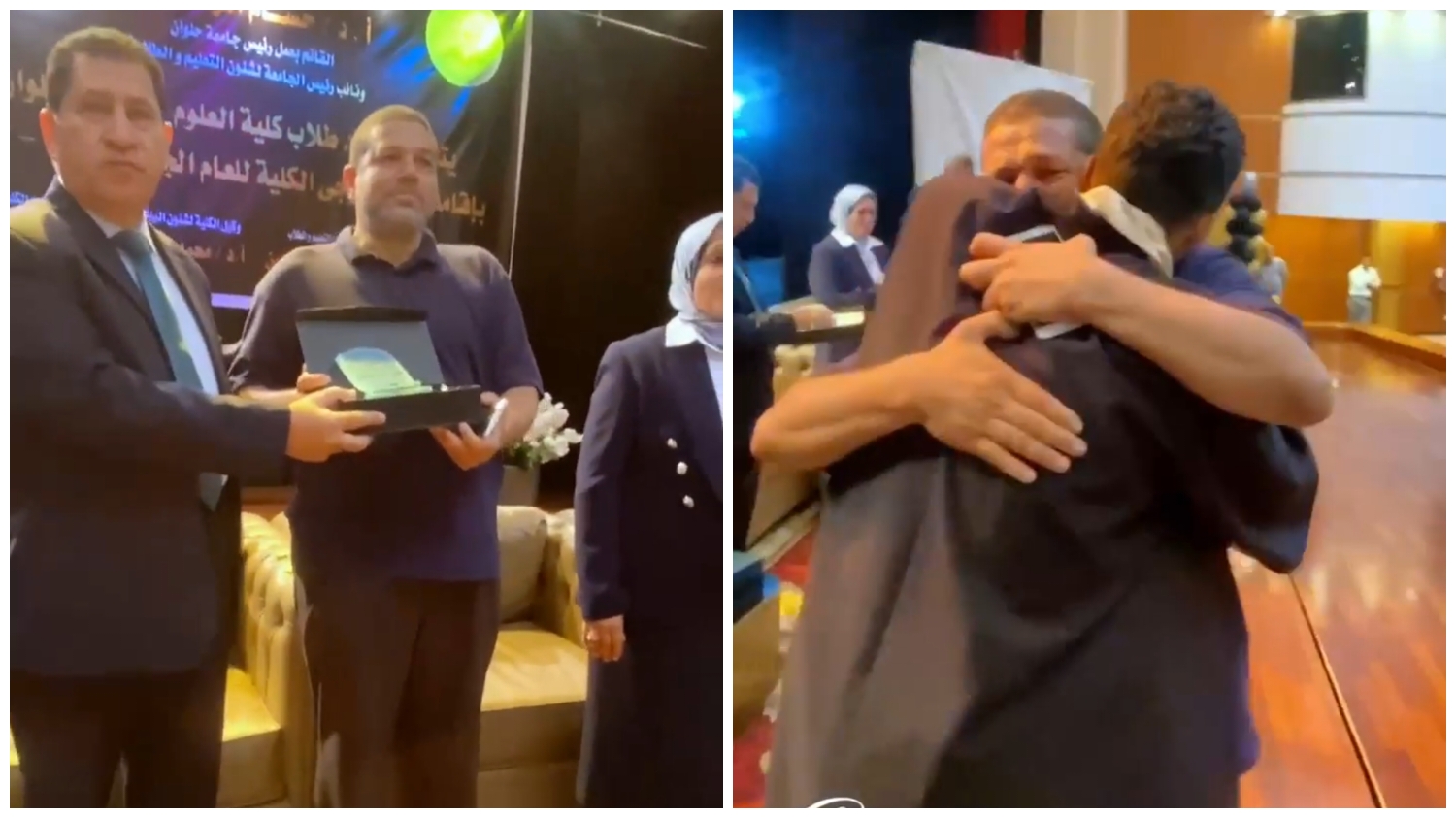 انتشر مقطع فيديو مؤلم على مواقع التواصل الاجتماعي يوثق لحظة تسلم أب شهادة تخرج ابنه في كلية العلوم بجامعة حلوان دفعة 2022.