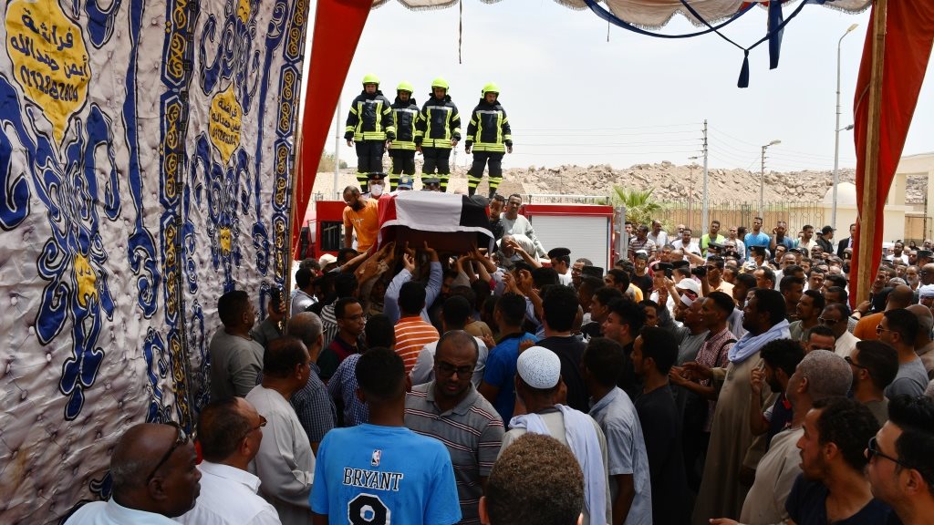 هذا وفى مشهد جنائزى مهيب وسط ترديد هتافات " لا إله إلا الله .. الشهيد حبيب الله " ودع أبناء أسوان إبنهم الشهيد البطل النقيب مصطفى محمد طاهر علام في مسقط رأسه بمحافظة أسوان حيث تقدم مراسم الجنازة العسكرية اللواء أشرف عطية محافظ أسوان يرافقه اللواء أشرف عبد الله مدير أمن أسوان والقيادات الأمنية والعسكرية والتنفيذية ، بجانب جموع غفيرة من أسرة وأقارب وأهالى الشهيد البطل وذلك بمقابر السيد البدوى بجوار إدارة شرطة النجدة .