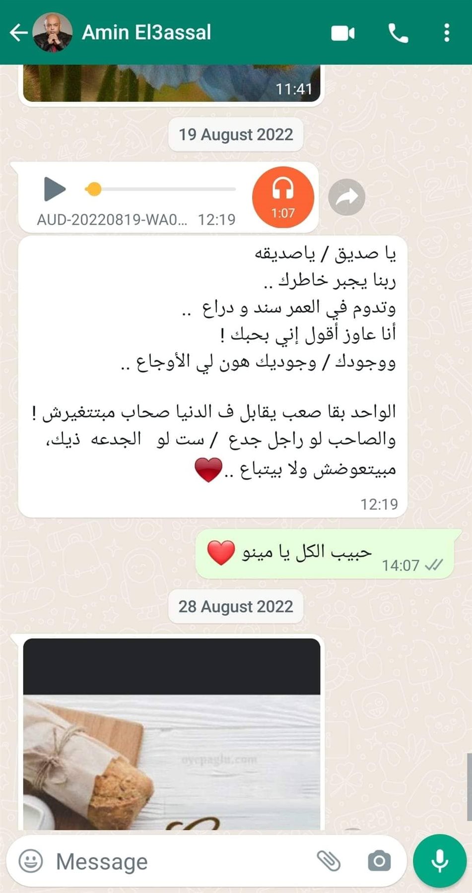 الرسالة الأخيرة بين أيمن بهجت وأمين العسال