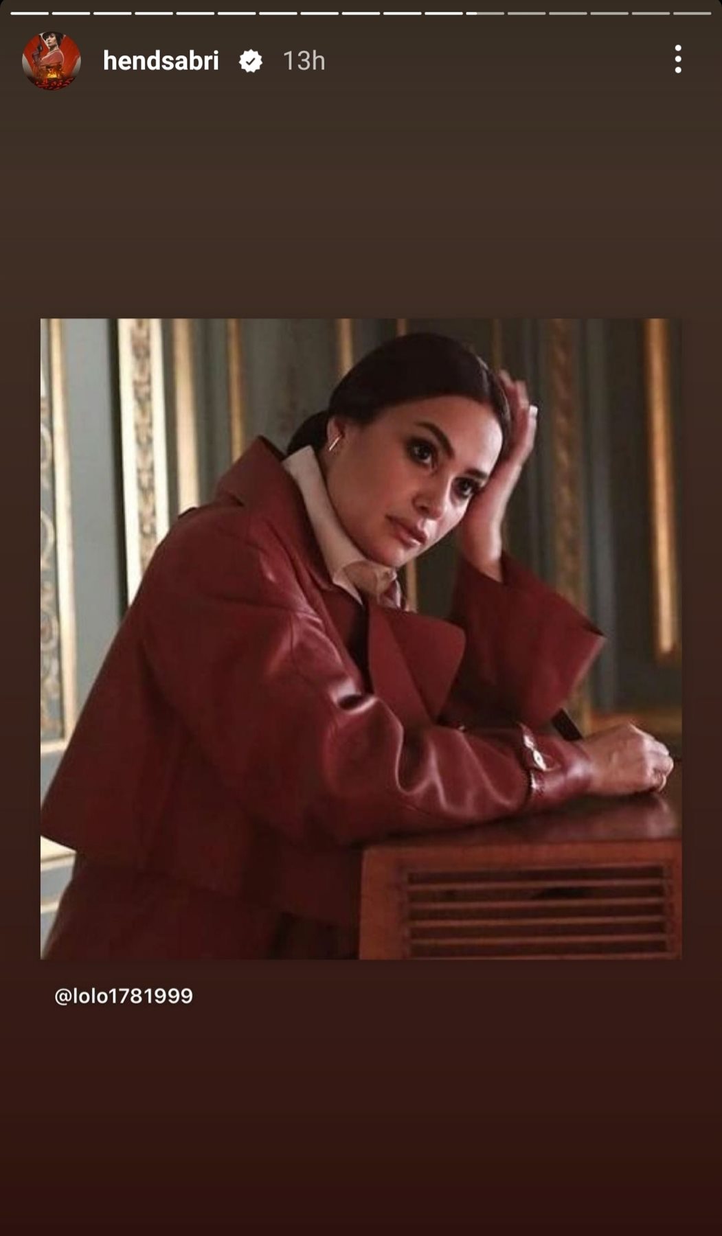 وظهرت هند صبرى بإطلالة كلاسيكية مرتدية بالطو جلد باللون النبيتي، وهو ما حاز على إعجاب متابعيها .