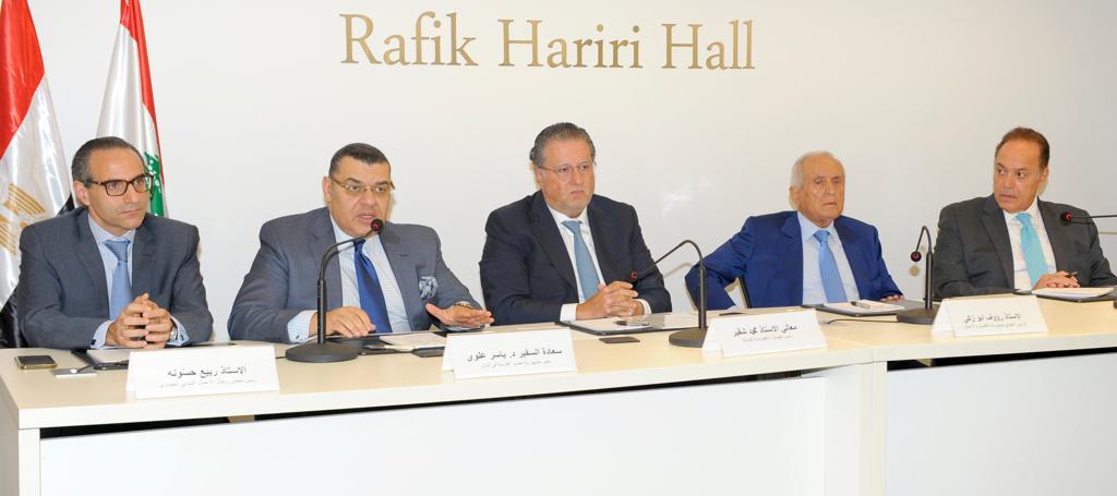 جاء ذلك خلال كلمته في مؤتمرا صحفيا عقد في غرفة بيروت برئاسة رئيس الهيئات الاقتصادية اللبنانية محمد شقير وبمشاركة السفير المصري د. ياسر علوي، وفؤاد حدرج نائب رئيس الجمعية المصرية اللبنانية لرجال الأعمال والرئيس التنفيذي لمجموعة الاقتصاد والأعمال رؤوف أبوزكي ورئيس مجلس الأعمال اللبناني - المصري د. ربيع حسونة، ورئيس المجلس الاقتصادي والاجتماعي شارل عربيد وجمع من رؤساء وممثلي الهيئات الاقتصادية من الغرف اللبنانية وجمعية الصناعيين اللبنانيين ونقابة المقاولين والاتحاد العمالي العام.