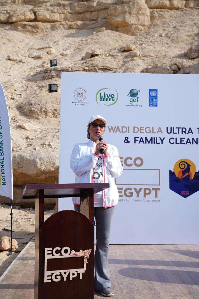وثمنت الوزيرة حرص القائمين على المبادرة على تقليل المخلفات الناتجة عن الحدث بقدر الإمكان ومنع استخدام زجاجات المياه البلاستيكية ذات الاستخدام الواحد، والتعاون شركاء الاستدامة لجمع كل المخلفات الناتجة عن الحدث وإعادة تدويرها، والتبرع بعائد المبادرة في صورة صناديق جمع مخلفات مقسمة إلى (بلاستيك/ورق/معادن/زجاج/مخلفات عضوية)، يتم نشرها على امتداد درب الوادي الرئيسي الذى يشهد اغلب كثافة الزوار (وهو الأكثر إتساخا أيضا) و في موقف انتظار السيارات، للتقليل من تناثر القمامة في انحاء الوادى.