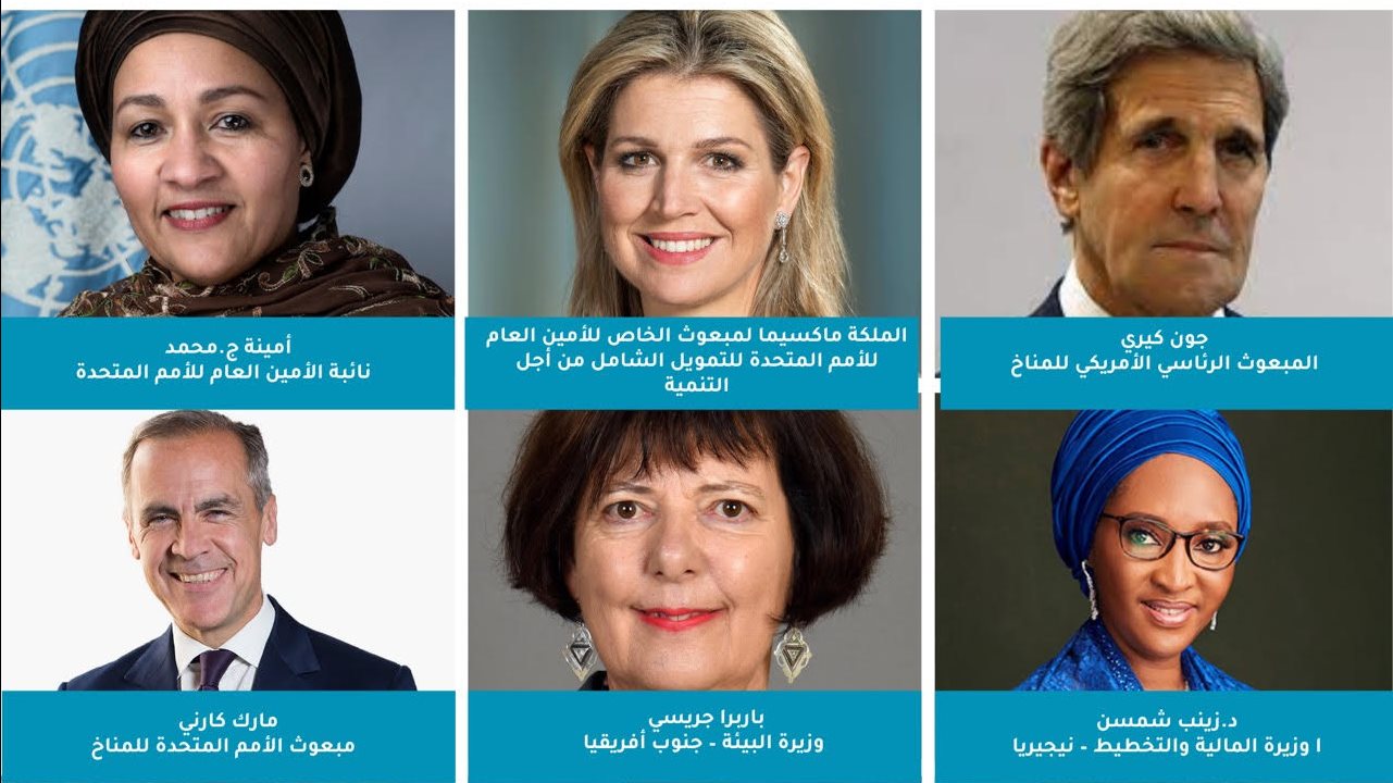 ومن بين المشاركين رفيعي المستوى من جميع أنحاء العالم، أمينة ج محمد، نائبة الأمين العام للأمم المتحدة ورئيس مجموعة الأمم المتحدة للتنمية المستدامة، وجون كيري، المبعوث الأمريكي للمناخ، ومارك كارني، مبعوث الأمم المتحدة للمناخ والتمويل والرئيس المشارك لتحالف جلاسجو للصافي الصفري «جي فانز»، وأوديل رينو باسو، رئيسة البنك الأوروبي لإعادة الإعمار والتنمية، وبندكت أوراما، رئيس البنك الأفريقي للتصدير والاستيراد، وماتياس كورمان، السكرتير العام لمنظمة التعاون الاقتصادي والتنمية، وخالدة بوزار، الأمين العام المساعد للأمم المتحدة ومديرة المكتب الإقليمي للدول العربية ببرنامج الأمم المتحدة الإنمائي UNDP، وفيرا سونجوي، الأمينة التنفيذية للجنة الاقتصادية لأفريقيا بالأمم المتحدة، وماري بانجيستو، المديرة المنتدبة لشئون سياسات التنمية والشراكات بالبنك الدولي، ومختار ديوب، المدير التنفيذي ونائب رئيس مؤسسة التمويل الدولية، والدكتور محمود محيي الدين، رائد المناخ المصري والمدير التنفيذي لصندوق النقد الدولي، والسفير ديفيد ثرون، كبير مستشاري المبعوث الرئاسي الأمريكي للمناخ، وغادة والي، كيل الأمين العام للأمم المتحدة والمدير التنفيذي لمكتب الأمم المتحدة للمخدرات والجريمة ومدير مقر المنظمة الدولية (UNODC)، ونيجل توبينج، رائد العمل المناخي البريطاني وممثل الأمم المتحدة رفيع المستوى لقمة المناخ COP27.