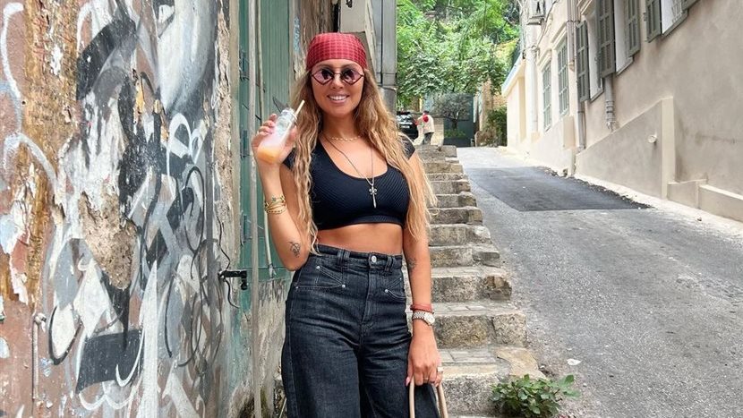 وخطفت الأنظار بإطلالة كاجوال، ولوك جديد، وغلب عليه اللون الأسود مع بندانة لشعرها باللون النبيتي، وكتبت عنوانا للصور: "سلام سعادة حب".