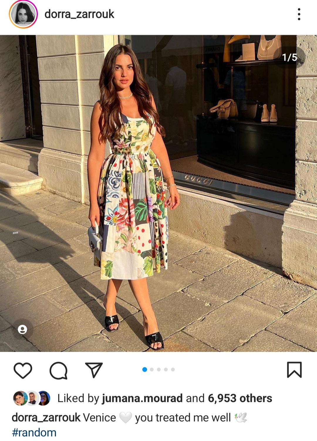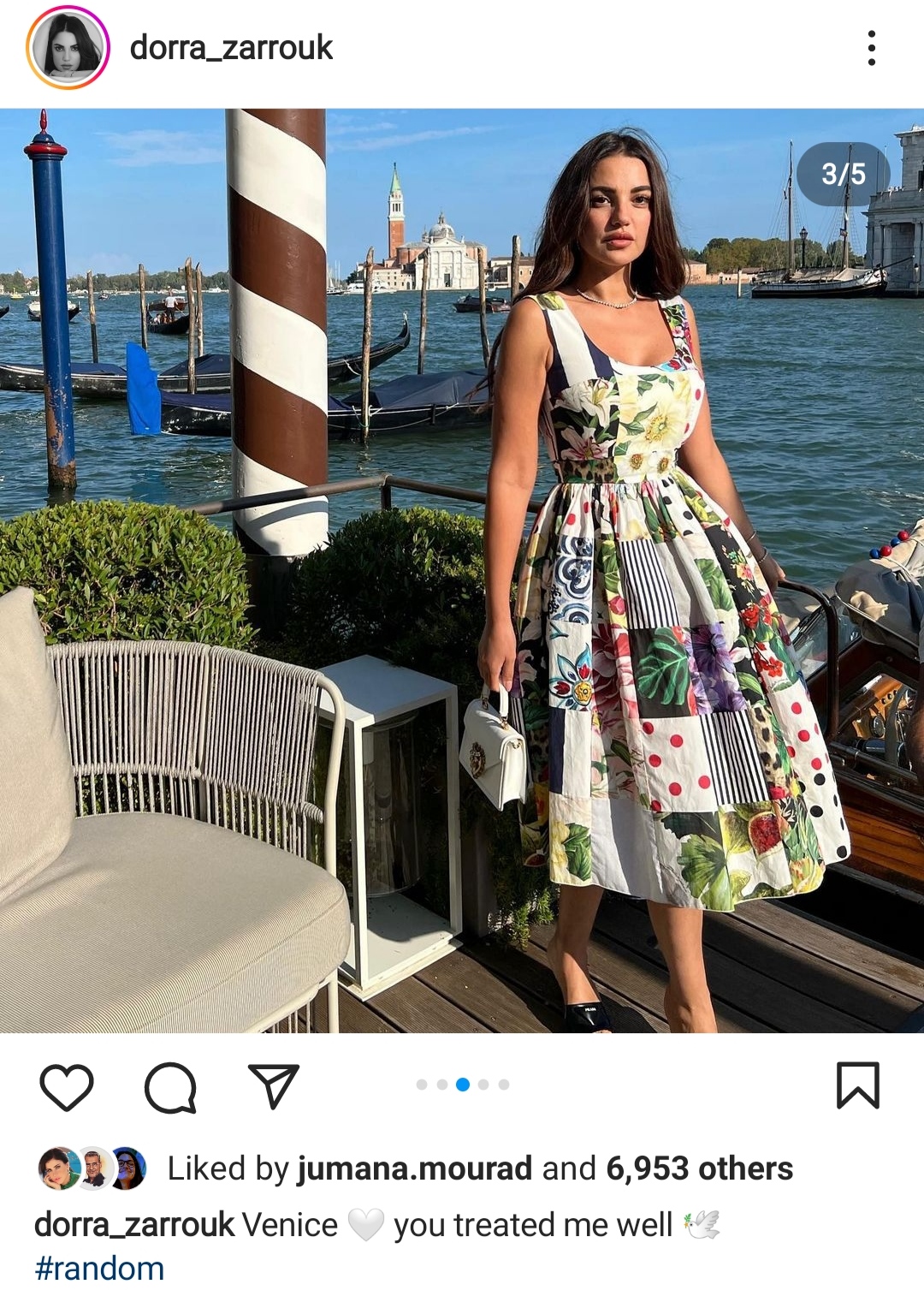 وظهرت درة باطلالة صيفية مرتدية فستان متعدد الالوان واعتمدت مكياج جذاب ، وذلك خلال حضورها مهرجان فينيسيا و نالت الصور اعجاب متابعيها.