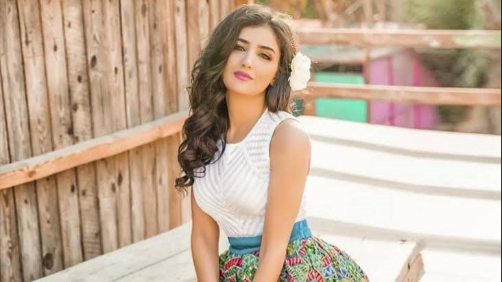 وتركتريا أبي راشدشعرها منسدلًا بتسريحة انسيابية وناعمة عبر كتفيها وظهرها، وهو ما أبرز من رقة وجمال إطلالتها.