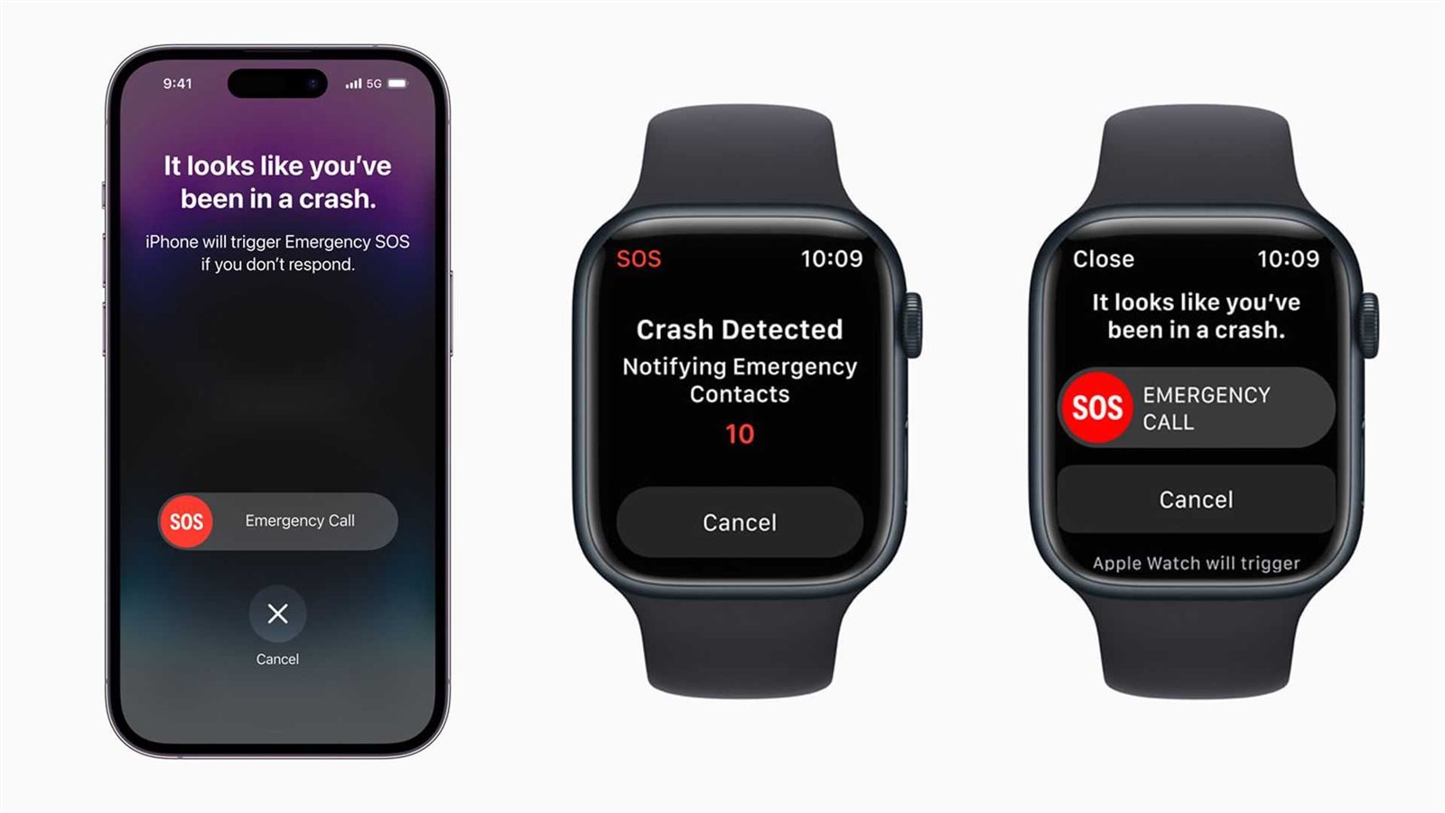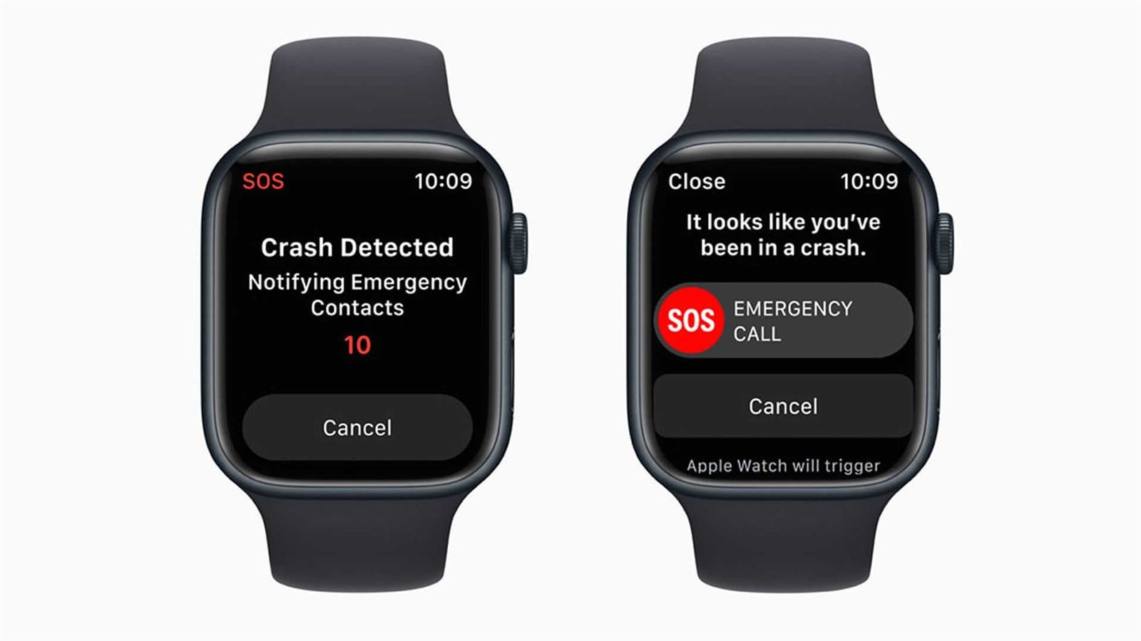 أعلنت أبل أن أحدث إصداراتايفون ووابل وتش، ستأتي مع ميزة الكشف عن حوادث السيارات، ما يعني ان الأجهزة الجديدة قادرة على اكتشاف ما اذا كان المستخدم يتعرض لحادث سير شديد، وبناء عللى ذلك سيقومون بإرسال رسائل استغاثة لجهات الاتصال والخدمات في حالات الطوارئ إذا لم يستجب المستخدم لمطالبة الشاشة في غضون 10 ثوانٍ.