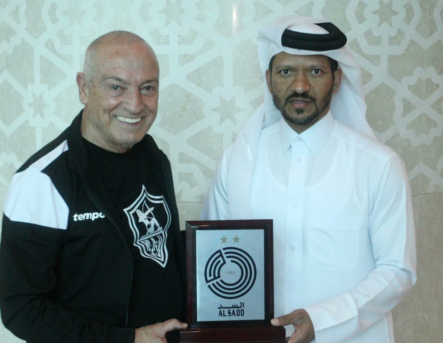 كَرم نادي السد القطري، البرتغالي جيسوالدو فيريرا، المدير الفني لنادي الزمالك، قبل مواجهة القلعة البيضاء للهلال السعودي في كأس سوبر لوسيل.