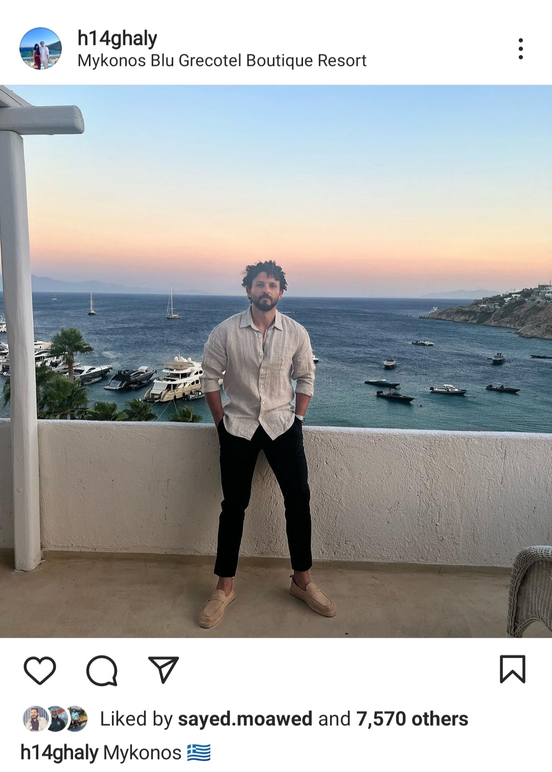 وظهر حسام غالي بإطلالة كاجوال من اليونان ، نالت إعجاب متابعيه.