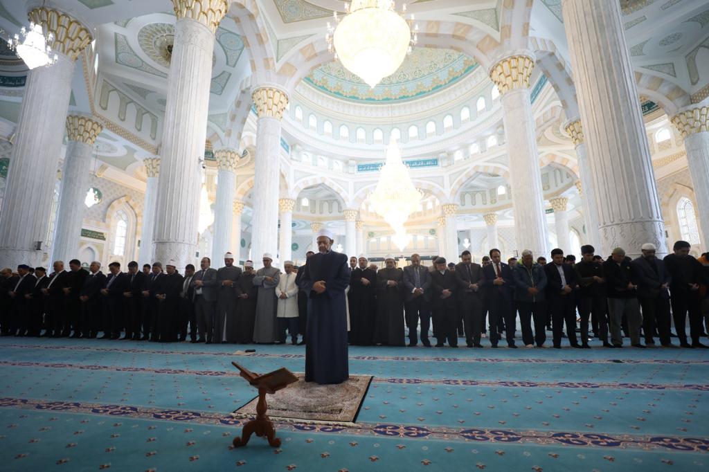 واستجاب لرغبة رؤساء وأعضاء الوفود الإسلامية المشاركة في مؤتمر زعماء الأديان، ومسلمي كازاخستان المتواجدين في مسجد "حضرة السلطان"، في إمامة المسلمين لصلاة الظهر، كما حرص فضيلته على تبادل أطراف الحديث مع رؤساء وأعضاء الوفود الإسلامية المشاركة في المؤتمر، والاستماع لبعض طلاب كازاخستان الحاصلين على منح دراسية للدراسة بجامعة الأزهر، مؤكدا أن الأزهر يرحب دائما بالتعاون مع الجميع، ويدعم كافة الجهود الهادفة لوحدة المسلمين حول العالم، ونشر السلام العالمي والتسامح بين الناس من خلال منهجه الوسطي، بعيدًا عن الإفراط والتفريط، وبيان حقيقة الدين الإسلامي وما يدعو إليه من قيم تحض على التعاون والرحمة والإنسانية.
