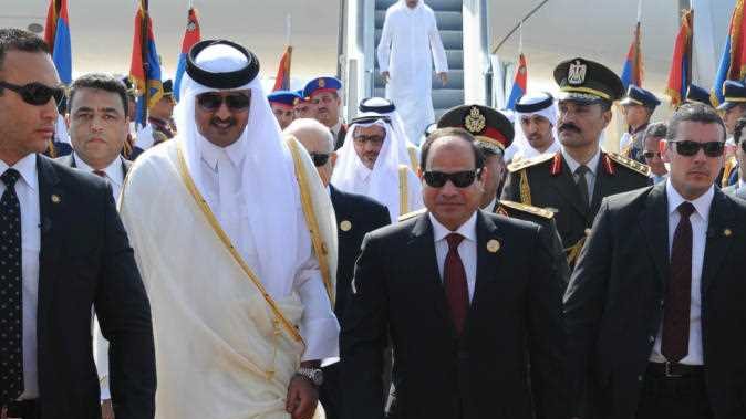 وقال السيسي، إن زيارته لـ قطر تعكس رغبة البلدين المتبادلة "لدعم التضامن العربي وتفعيل العمل العربي المشترك لتحقيق هدف رئيسي، وهو الحفاظ على أمن واستقرار المنطقة خلال المرحلة الراهنة التي تتسم بدقة شديدة في ظل ظروف عدم الاستقرار الإقليمي والدولي الذي يجتاح العالم، الأمر الذي يتطلب تكثيف التعاون والتنسيق المشترك بين مصر وقطر".