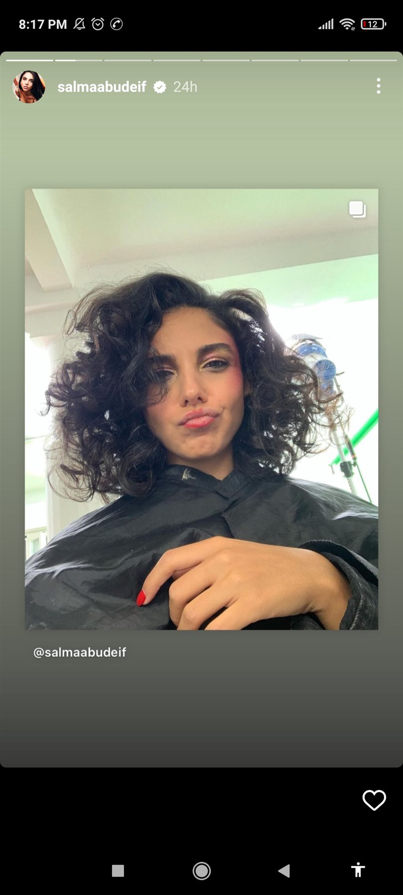 وظهرت سلمى أبو ضيف بإطلالة جذابة بشعر قصير كيرلي ، ما نال اعجاب متابعيها .