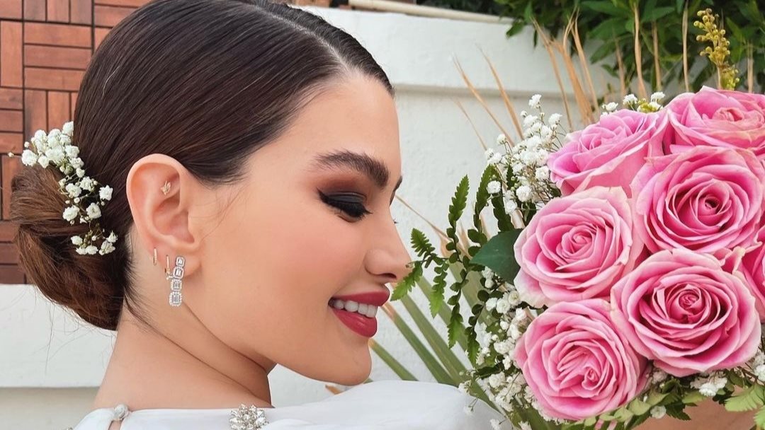 وظهرت بن حسين بإطلالة أنيقة مرتدية فستان زفاف واعتمدت مكياج جذاب، مما نال إعجاب متابعيها.
