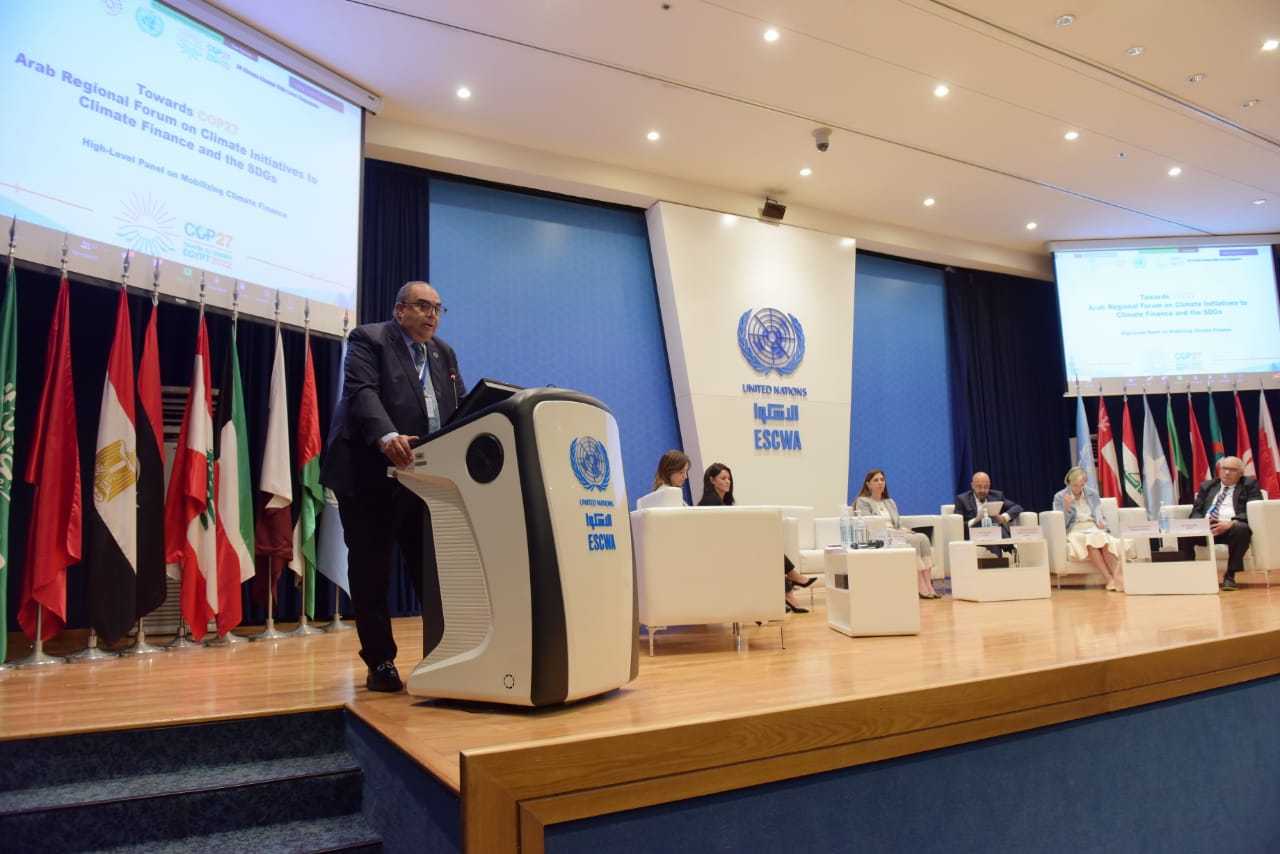 جاء ذلك خلال مشاركته في الجلسة الافتتاحية للمنتدى الإقليمي الخاص بالمنطقة العربية لتمويل العمل المناخي الذي تستضيفه لجنة الأمم المتحدة الاقتصادية والاجتماعية لغرب آسيا (إسكوا) في العاصمة اللبنانية بيروت، والتي شهدت مشاركة افتراضية من سامح شكري، وزير الخارجية والرئيس المعين لمؤتمر الأطراف السابع والعشرين، والدكتورة هالة السعيد، وزيرة التخطيط والتنمية الاقتصادية، والدكتور محمد معيط، وزير المالية، ونائب الأمين العام للأمم المتحدة أمينة محمد.