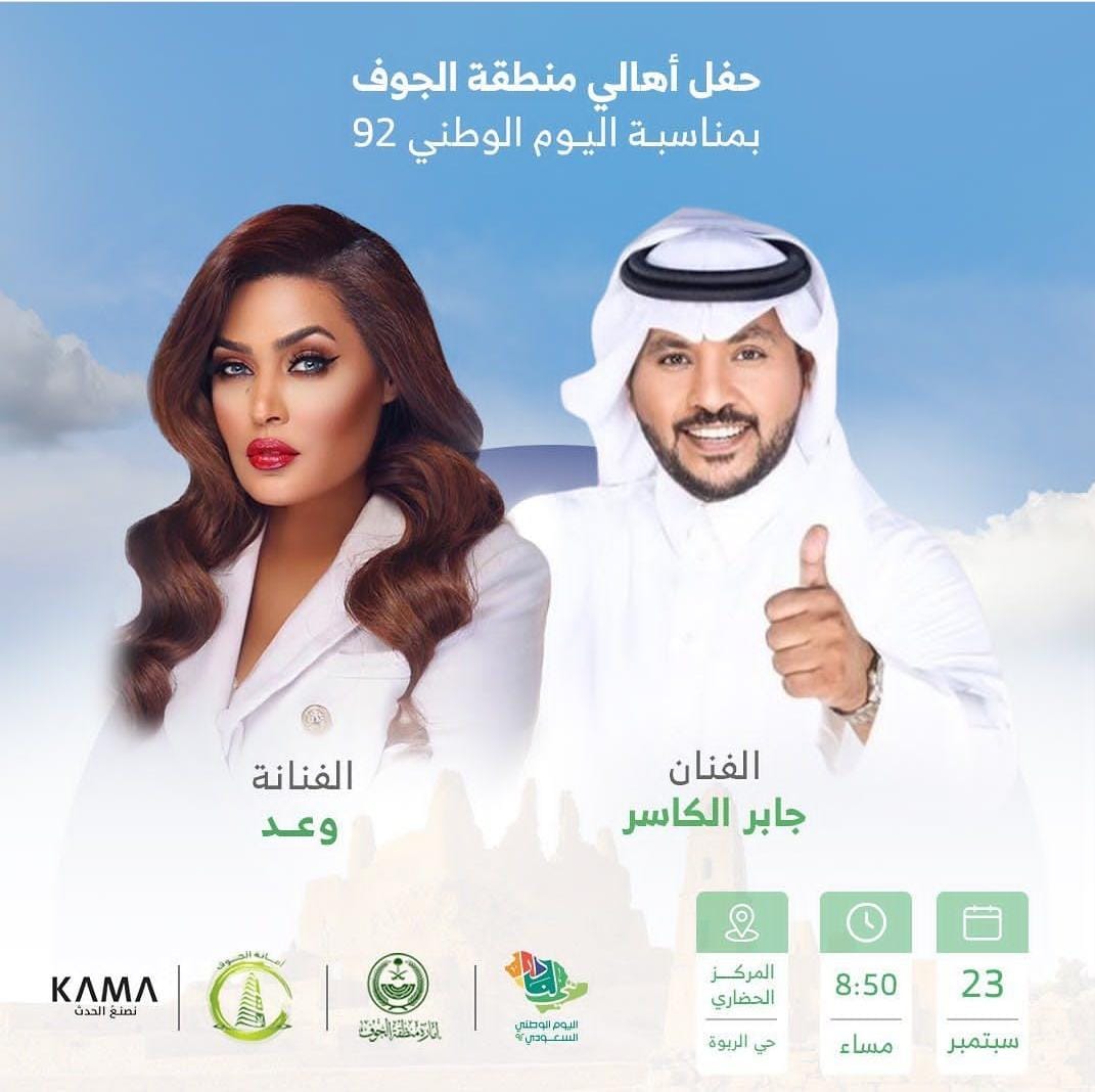 وأعلنت النجمة وعد، عبر حسابها الرسمي على موقع الصور الشهير"انستجرام" استعدادها لإحياء الحفل، بنشرها البوستر الرسمي للحفل وعلقت عليه، قائلة: "اتشرفت بدعوتي للمشاركة باحتفالات الوطن بمنطقة الجوف الحبيبة".