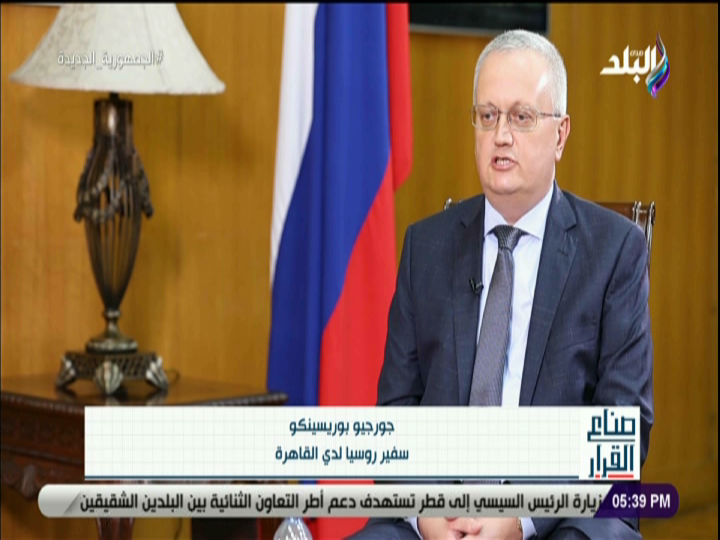 كشف جيورجي بوريسينكو، السفير الروسي لدى القاهرة، خلال لقائه ببرنامج “صناع القرار”، عبر فضائية “صدى البلد”، تقديم الإعلامي الدكتور شادي الزيات، عن العديد من التفاصيل الخاصة حول التعاون بين مصر وروسيا.