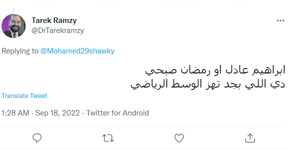 - ابراهيم عادل او رمضان صبحي دي اللي بجد تهز الوسط الرياضي