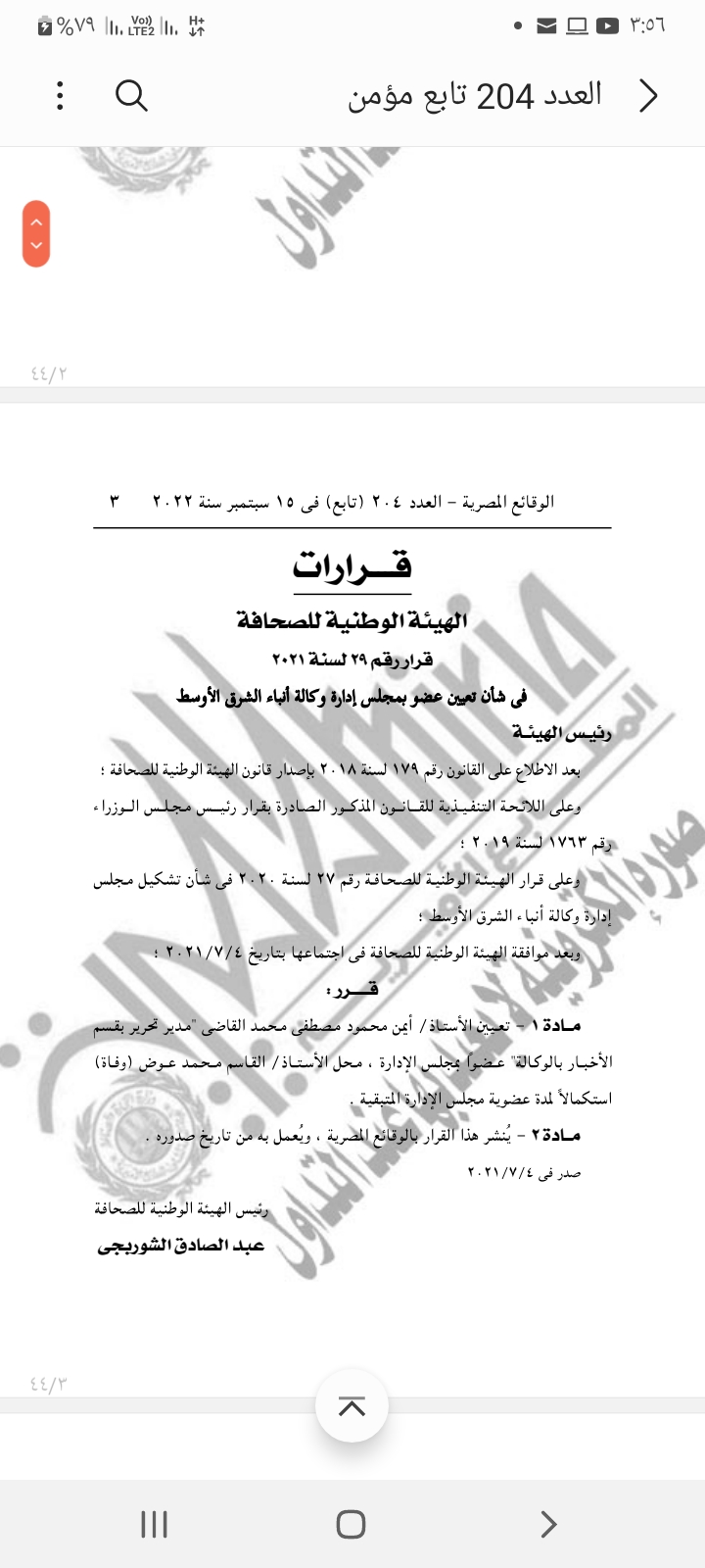 قانون رقم 179 لسنة ٢٠١٨ بإصدار قانون الهيئة الوطنية للصحافة ولائحته التنفيذية .