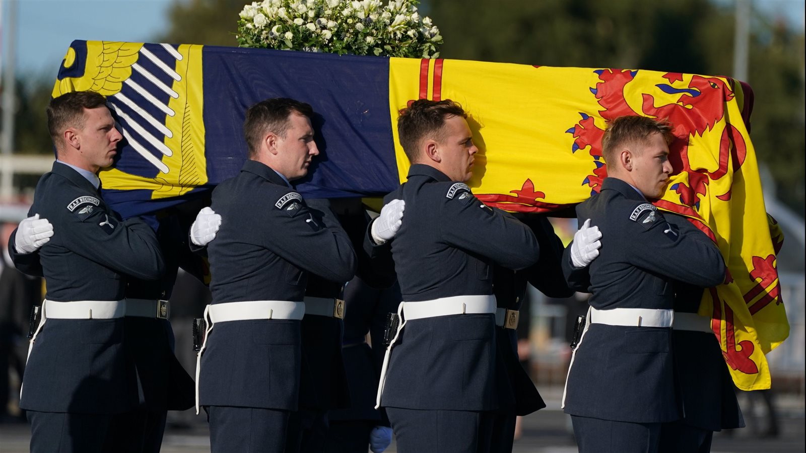 وكان تابوت إليزابيث الثانية المصنوع من خشب البلوط، المغطى بالمعايير الملكية لاسكتلندا ومعه إكليل من الزهور، ملقى في قاعة الرقص بقلعة بالمورال، منزلها الصيفي في اسكتلندا حيث توفيت بسلام يوم الخميس.