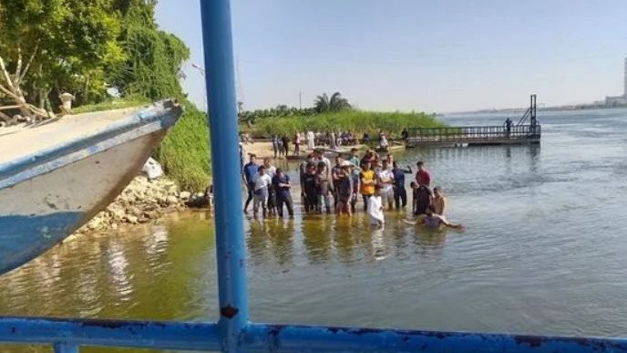 على الفور انتقل الى موقع الحادث ضباط المركز والإسعاف والإنقاذ النهري وتبين من المعاينة غرق ثلاثة أشخاص إثر قيامهم بالقفز من المعدية النهرية خوفا بعد اشتعال النيران بموتور المعدية أسفل الكوبري القديم.