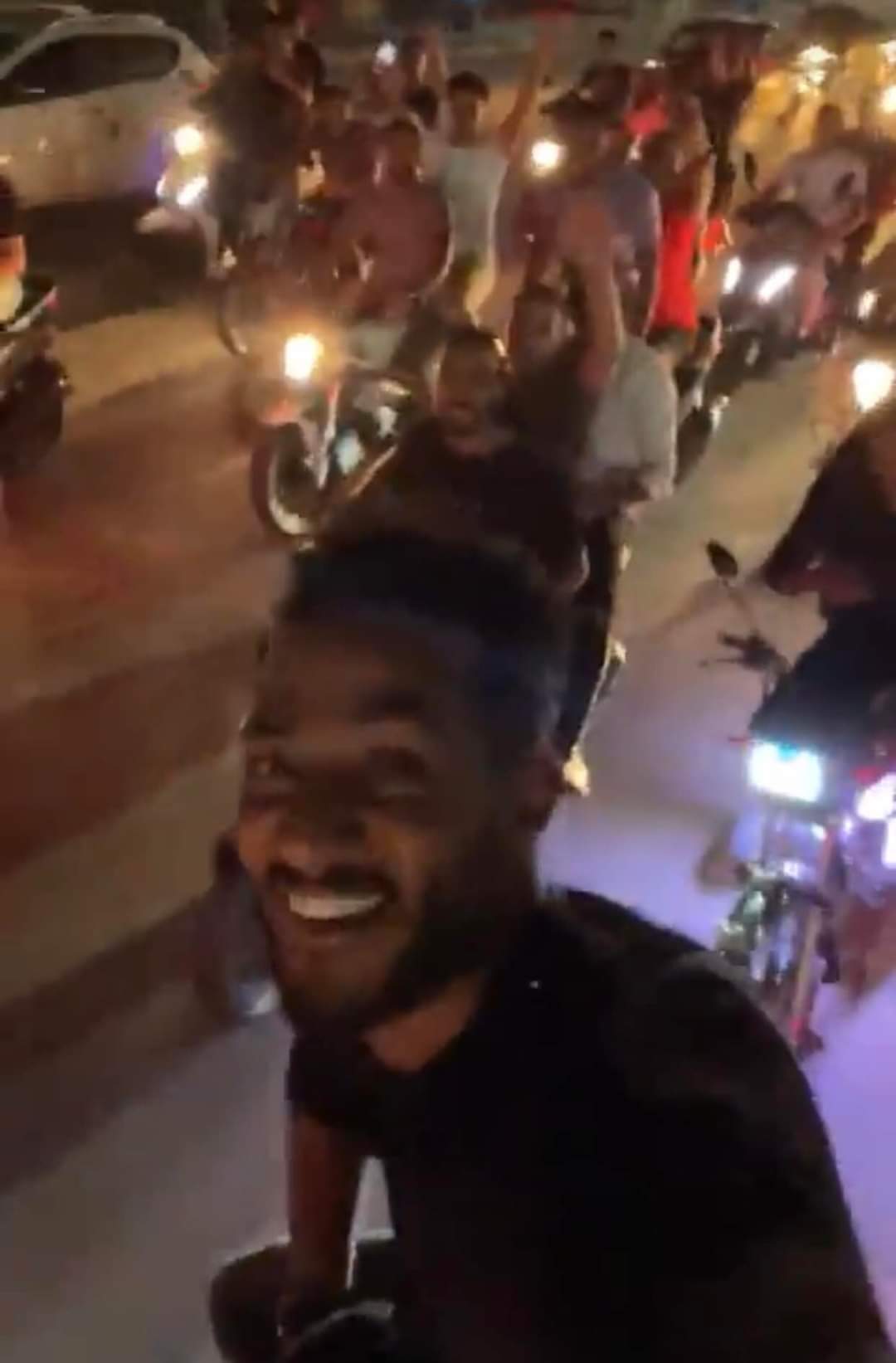 وكانت الصور المتداولة لمحمد رمضان مع محبيه بشوارع الإسكندرية بالموتسيكلات في وسط الشارع .