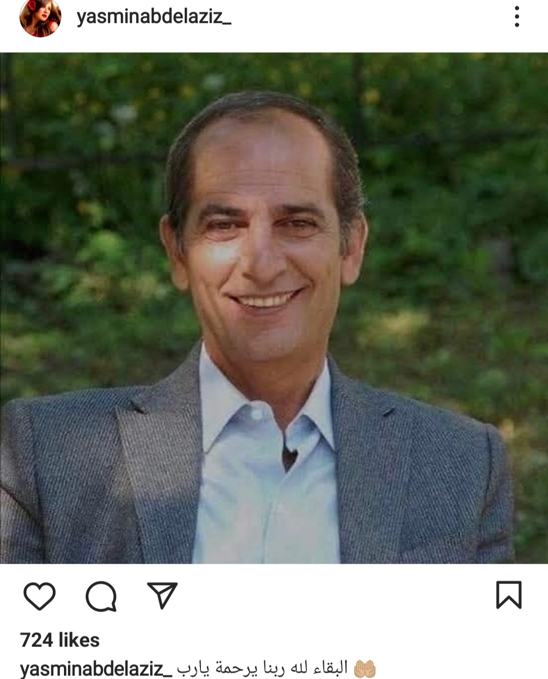 وعلقت ياسمين عبد العزيز:" البقاء لله ربنا يرحمه".