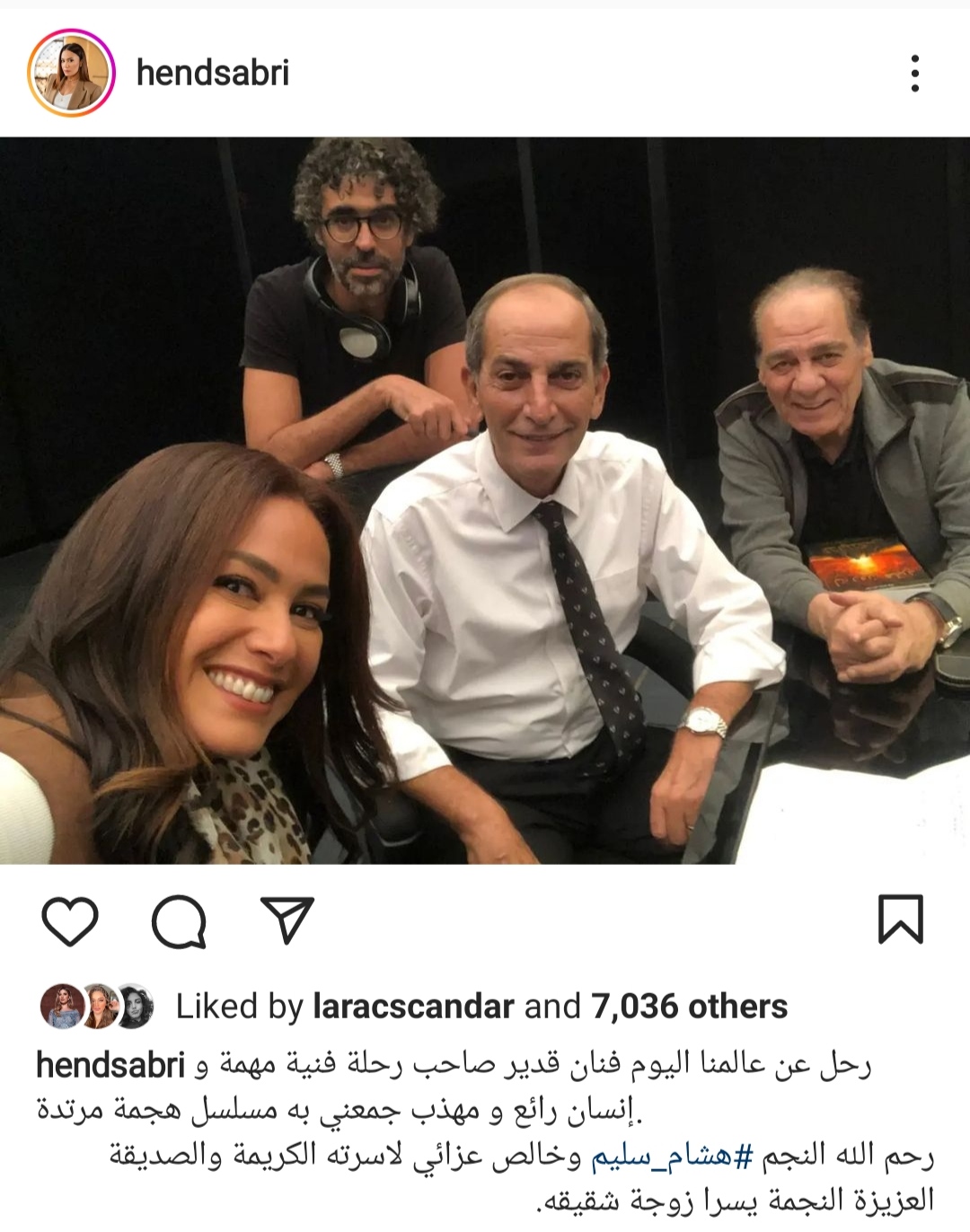 نعت الفنانة هند صبري ، الفنان الراحل هشام سليم، وذلك عبر نشر صورة له على صفحته الرسمية بموقع التواصل الاجتماعي للصور والفيديوهات “إنستجرام”